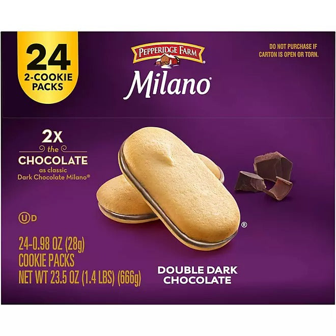 Indulge in the rich, sophisticated flavor of the Milano Double Dark Chocolate Cookie 24-pack. Each cookie features a delicate, buttery biscuit layered with intense double dark chocolate, offering a perfect balance of smoothness and depth. Ideal for sharing or savoring over time, this pack ensures a premium chocolate experience with every bite. Perfect for those who appreciate expertly crafted treats with bold, refined taste.